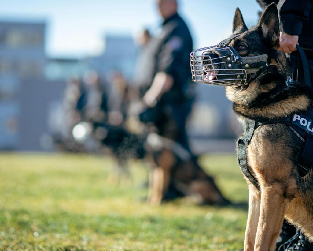 Geschirre, Trainingsgeräte und taktische Ausrüstung für einsatzbereite Arbeitshunde.